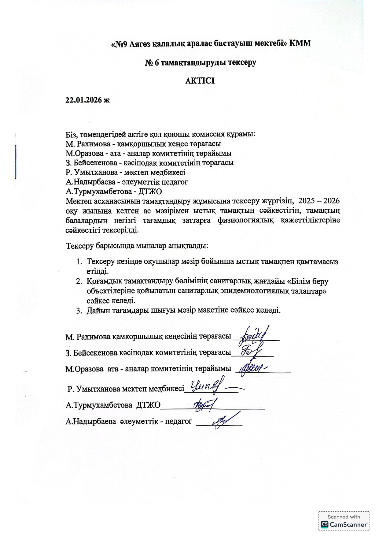 Бракеражды комиссия актісі