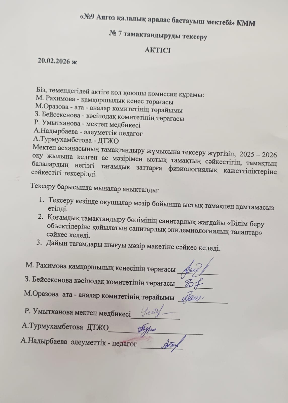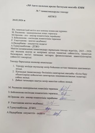 20.02.2026 жылы Бракеражды комиссия жүргізілді